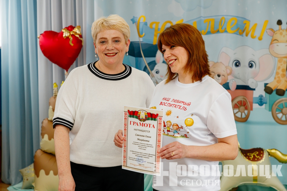 Одним из наиболее приятных моментов торжества стала церемония награждения. Поздравить юбиляров с замечательной датой пришли главный специалист отдела по образованию горисполкома Оксана Якубёнок и председатель горкома профсоюза работников образования и науки Татьяна Шибакова. Без внимания в праздничный день не остался ни один представитель сплоченной общим делом команды семнадцатого сада.