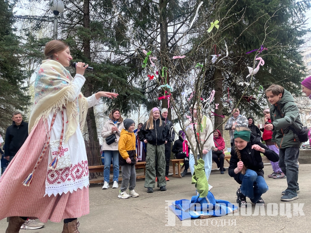 Каб хутчэй абудзіць зямлю ад халоднага надвор’я, арганізатары запрасілі гараджан у карагод каля імправізаванага «Дрэва жыцця», якое загаддзя ўпрыгожылі стужкамі-пажаданнямі. Пад сакавіты вакал гурта архаічных спеваў «Княжыч» новапалачане весела танцавалі і ўдзельнічалі ў старадаўніх беларускіх забавах «Што й па ельнічку», «Проса», «Гары-гары ясна», «Іванька». У перапынках набывалі