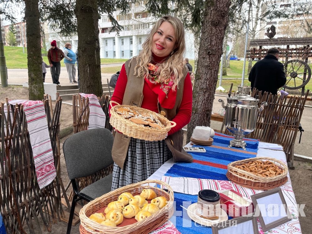 сувеніры ручной работы клуба майстроў «Прамень», частаваліся хатнім печывам і духмянай гарбатай з самавара. Дарэчы, спецыяльна для гасцей працаўнікі цэнтра выпеклі больш за паўсотню прыгожых здобных «жаўрукоў».