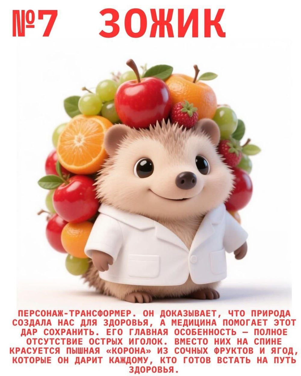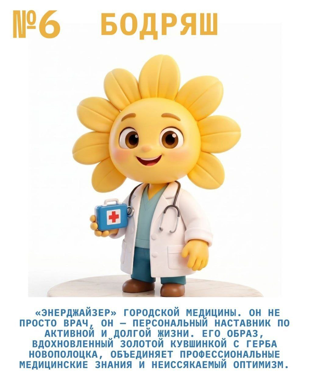 Планируется, что этот персонаж станет помощником для сотрудников медучреждения в деле продвижения здорового образа жизни. Он будет принимать участие в акциях, давать советы в постах в соцсетях и станет узнаваемым другом для маленьких и взрослых пациентов.